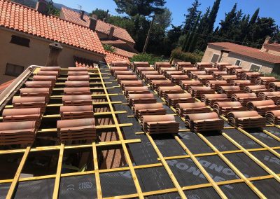 C'est notre spécialité. Nous maîtrisons la pose de tuiles canal et romanes, le remaniement de toitures anciennes et la réfection de faîtages à la chaux, typiques de notre région provençale.